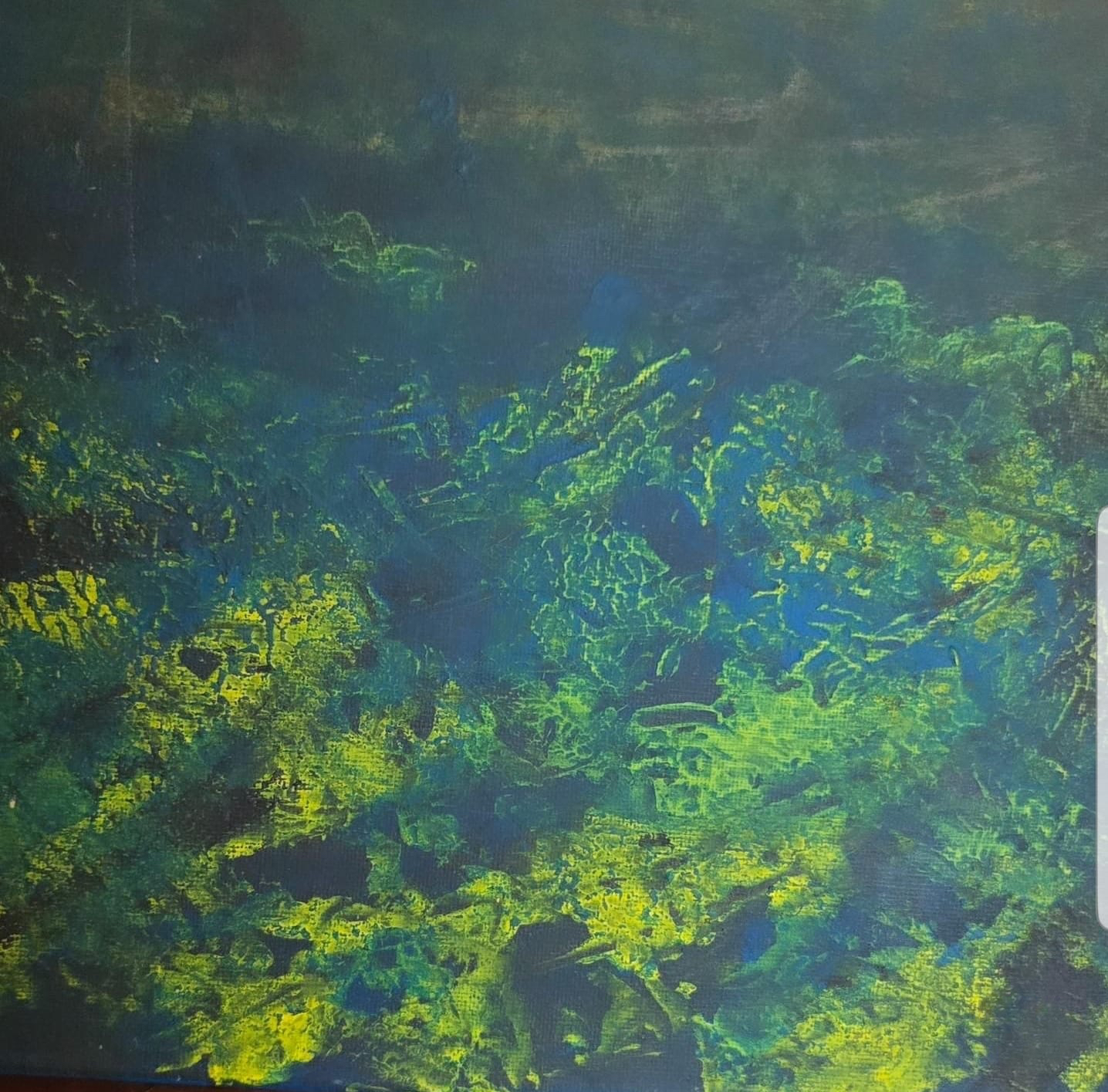 - 🎨Plongez dans un univers où les teintes vertes et bleues se rencontrent pour créer un jeu de lumière envoûtant. Ce tableau abstrait évoque des paysages imaginaires, entre terre et mer, où la nature et la mystique se confondent. 🌿🌊"Reflets Mystiques" est une invitation à la contemplation et à la découverte des nuances subtiles qui révèlent la beauté cachée de l'inconnu.