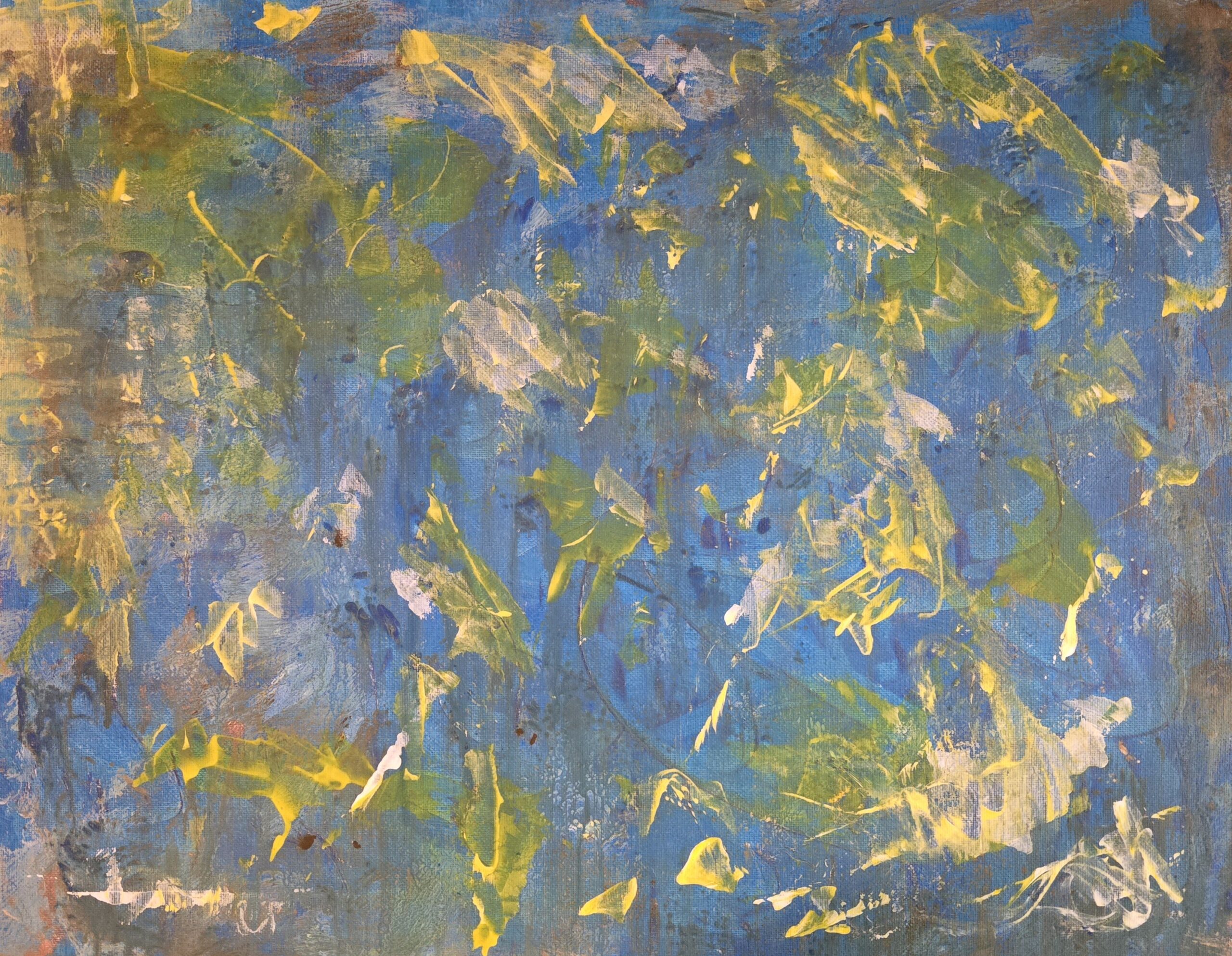 Plongez dans une atmosphère apaisante et dynamique avec Éclats de lumière sur l’océan, une œuvre abstraite réalisée en peinture acrylique en 2024. Les nuances de bleu rappellent les profondeurs marines, tandis que les éclats de jaune insufflent chaleur et énergie, évoquant les reflets lumineux dansant à la surface de l’eau.