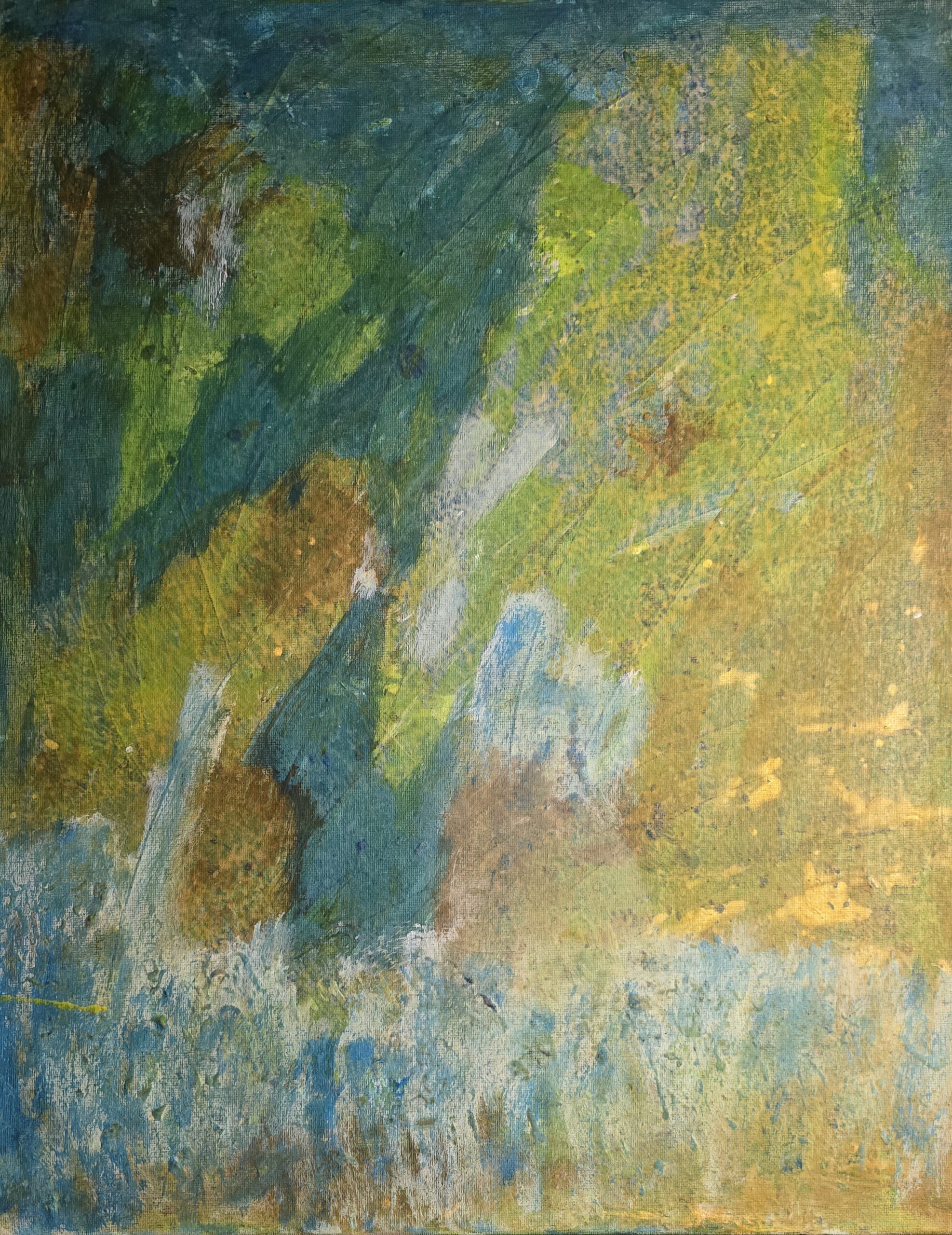Cette œuvre évoque la beauté sauvage et luxuriante des côtes verdoyantes, où la terre et la mer se rencontrent dans une harmonie de couleurs naturelles. Les nuances de vert profond rappellent les forêts denses qui bordent l’océan, tandis que les touches de bleu et de doré suggèrent la lumière du soleil se reflétant sur les vagues et les reliefs.