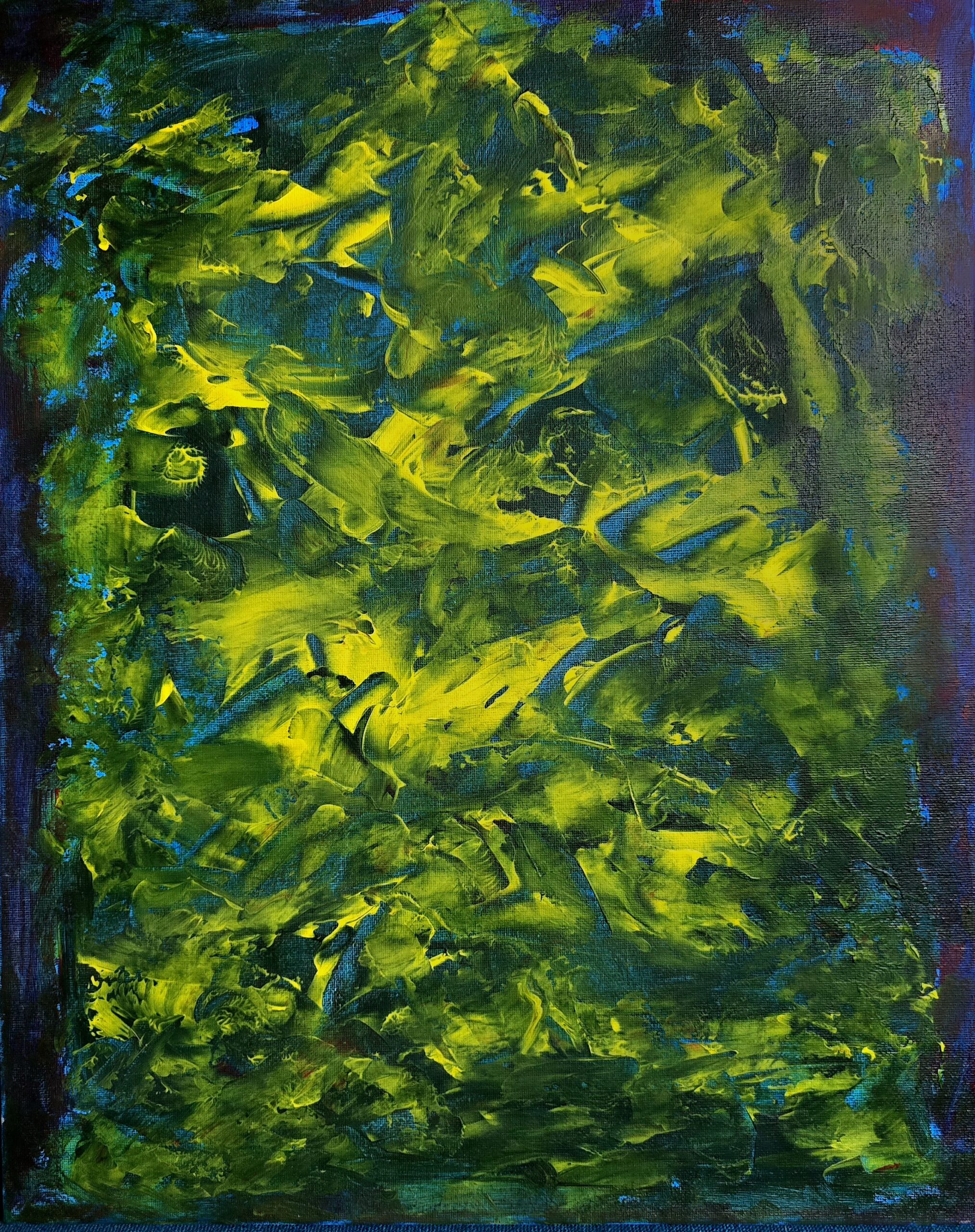 « Éveil printanier » est une peinture abstraite vibrant de nuances de vert, bleu et jaune, capturant la fraîcheur et la vitalité d’une nature renaissante au printemps. Les coups de pinceau texturés et fluides évoquent une forêt luxuriante baignée de lumière, où les feuilles semblent danser sous les rayons du soleil. Les touches de bleu ajoutent une profondeur apaisante, contrastant avec l’énergie lumineuse des jaunes éclatants, rappelant la fusion harmonieuse entre ciel et terre lors des premiers jours de la saison printanière. Cette œuvre invite à une contemplation paisible, symbolisant le renouveau et la croissance. »