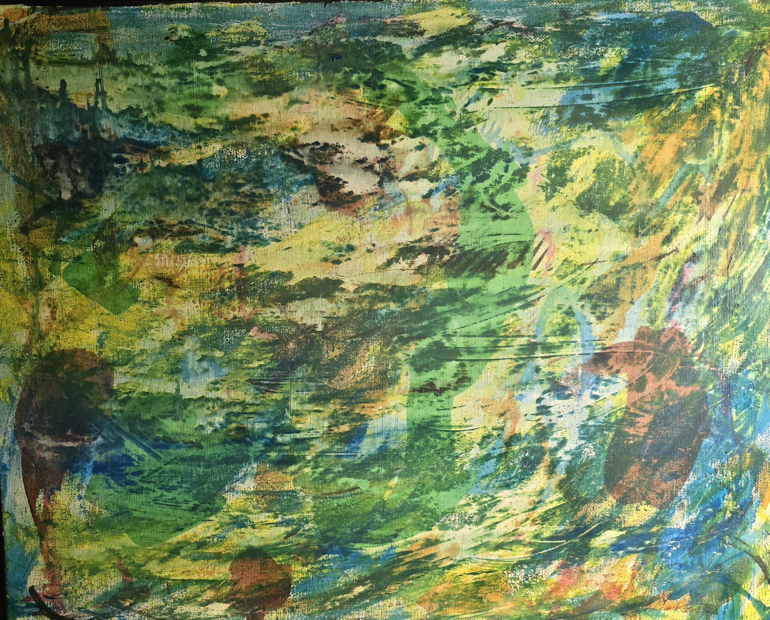 Cette œuvre, intitulée Fusion des Estaciones (Fusion des Saisons), explore l’harmonie et la continuité entre les cycles naturels. Les couleurs se mêlent et s’entrelacent, évoquant la transition fluide entre le printemps, l’été, l’automne et l’hiver. Chaque détail de la toile reflète la richesse et la diversité des saisons, offrant un spectacle visuel empreint de poésie et de sérénité.