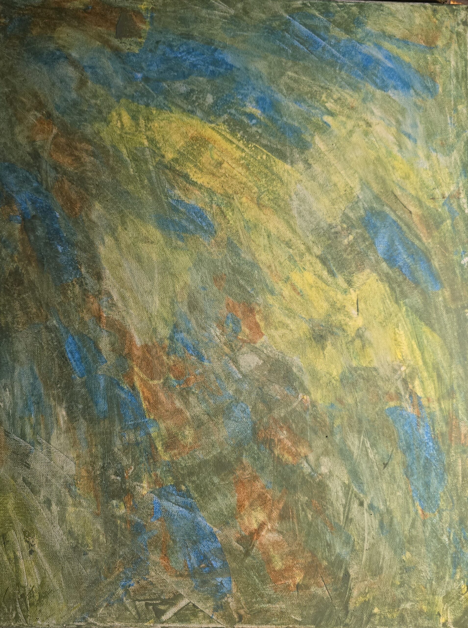 Cette œuvre abstraite capture l’énergie du Levant, ce vent qui caresse la Méditerranée au lever du jour. La palette de couleurs mêle des nuances de vert profond, des éclats d’or lumineux et des touches de bleu vibrant, évoquant le mouvement fluide du vent et la lumière douce du matin. L’application dynamique des couleurs crée un jeu subtil de textures et de transparences, donnant à la composition une atmosphère vivante et changeante.