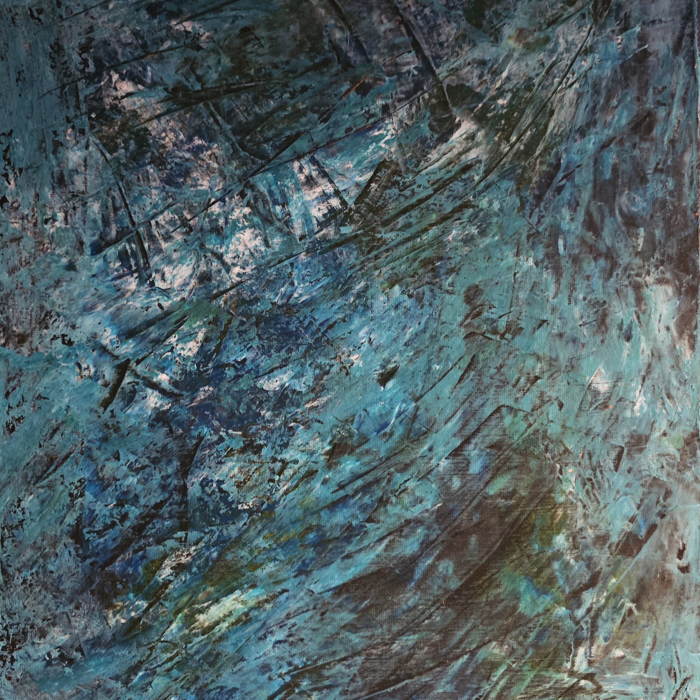 Cette peinture acrylique révèle la maîtrise du geste et du travail des nuances. La fluidité des coups de pinceau offre un rendu texturé et captivant, évoquant un tourbillon hypnotique où l’azur prend vie.