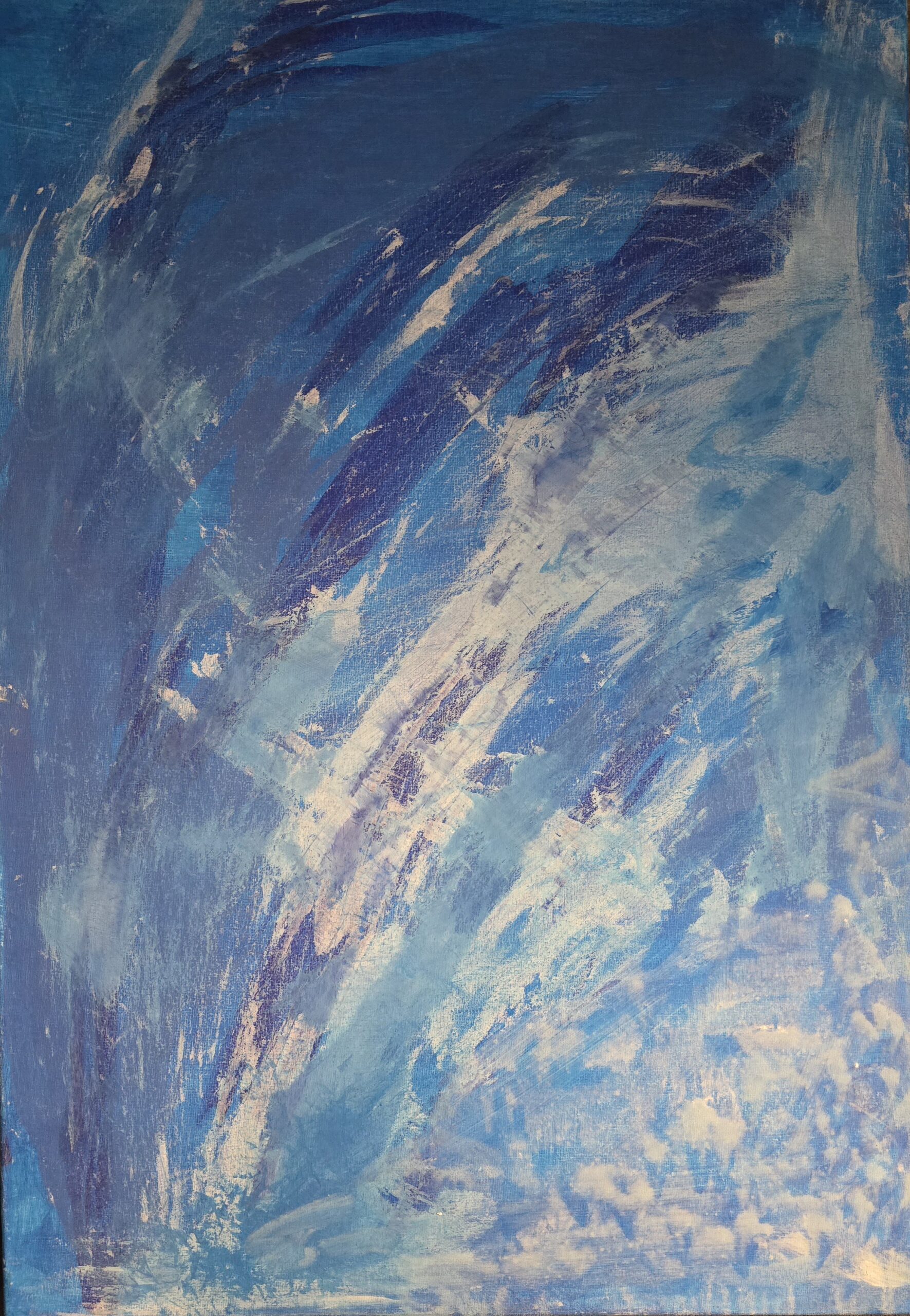 Cascade Céleste est une toile abstraite (70 x 50 cm) réalisée en 2024 à l’acrylique. Ses nuances de bleu et ses textures fluides évoquent la puissance et la sérénité d’une cascade céleste.
