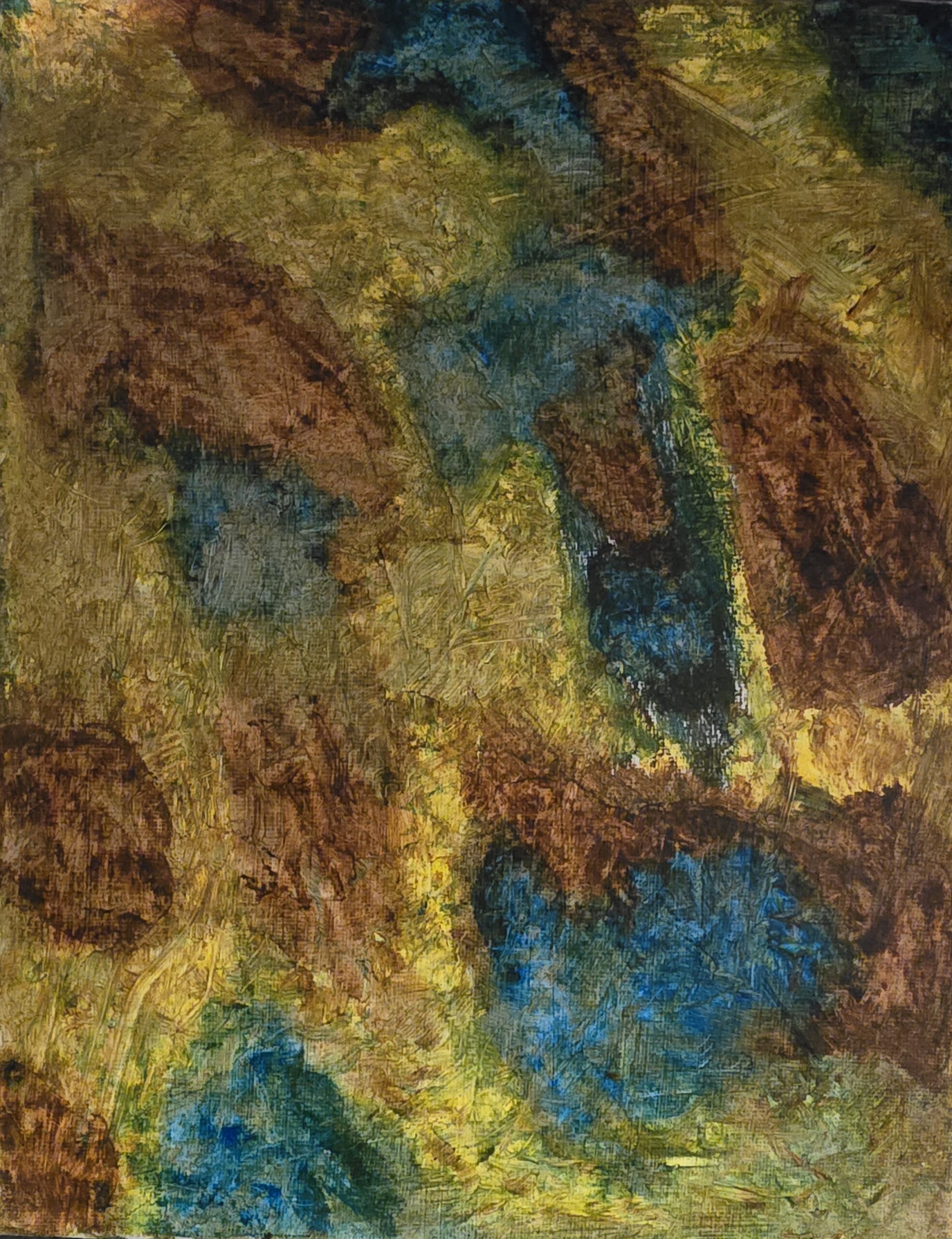 « Terre Mystique » invite à une immersion profonde dans des nuances organiques et lumineuses. Cette œuvre abstraite allie des teintes de brun terreux, de jaune doré et de bleu profond, évoquant un dialogue harmonieux entre la terre et la lumière. Chaque détail révèle une texture riche, conférant à cette toile une profondeur unique.