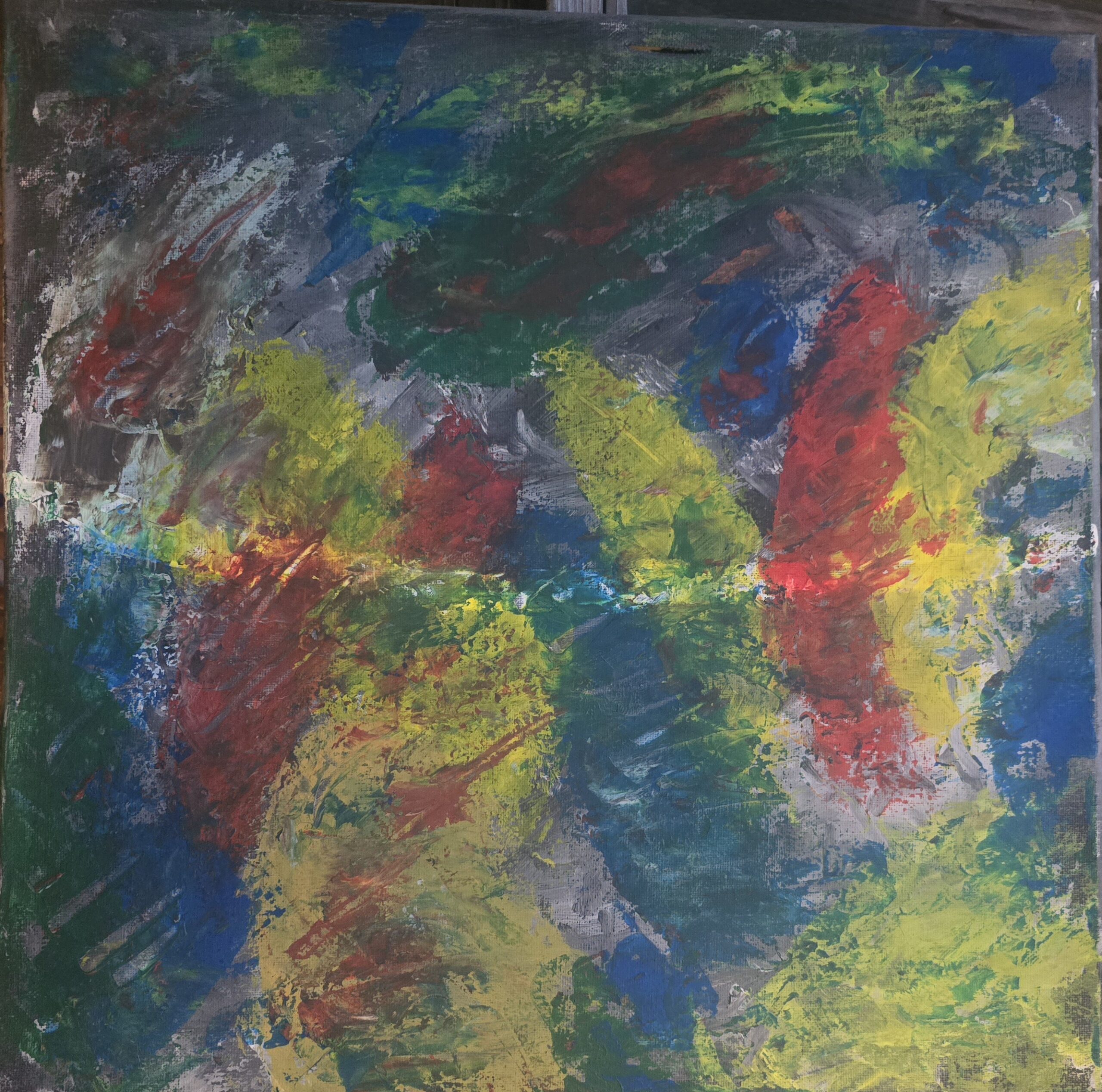 Tormenta de Colores est une toile abstraite au format 40 x 40 cm, réalisée en 2024 avec de la peinture acrylique. Son énergie vibrante et ses teintes intenses évoquent la passion et la force d’une tempête espagnole.