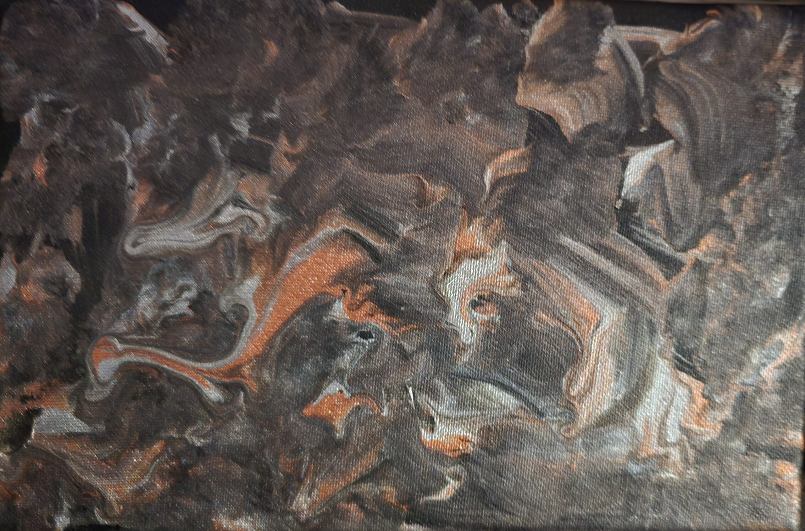 Découvrez Tourbillon de Cendres, une toile acrylique réalisée en 2024 par Lorenzo Art. Ce petit format 15 x 17 cm dévoile des nuances sombres et des reflets cuivrés dans un mouvement captivant.